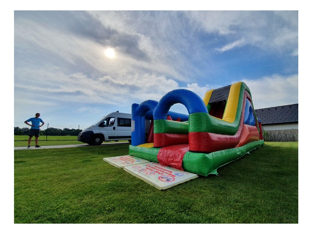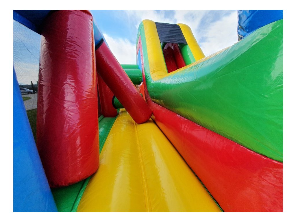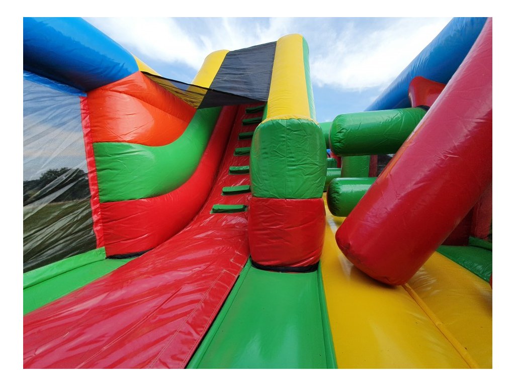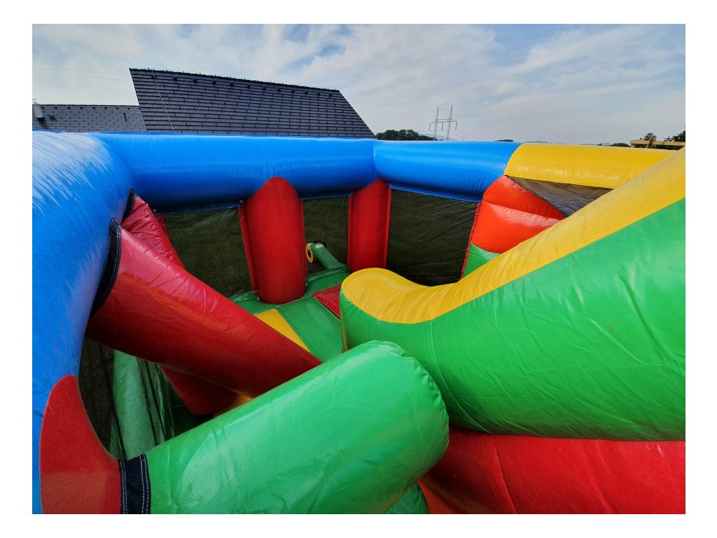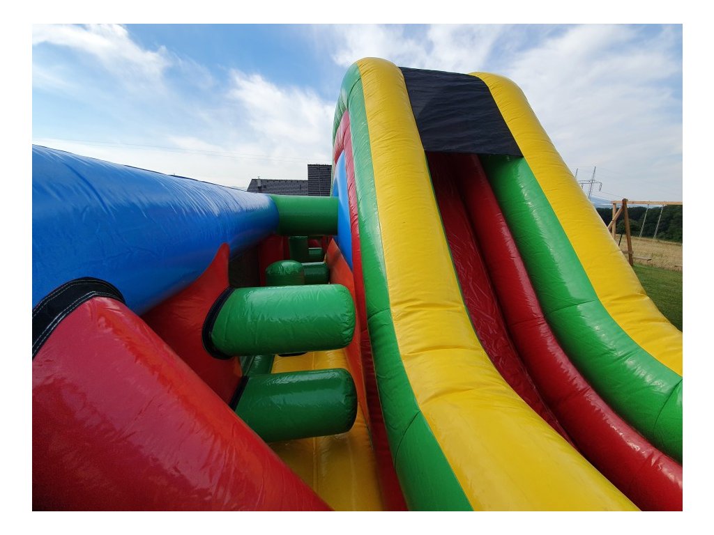 Nafukovací parkour, překážky, prolézačky, skluzavka.