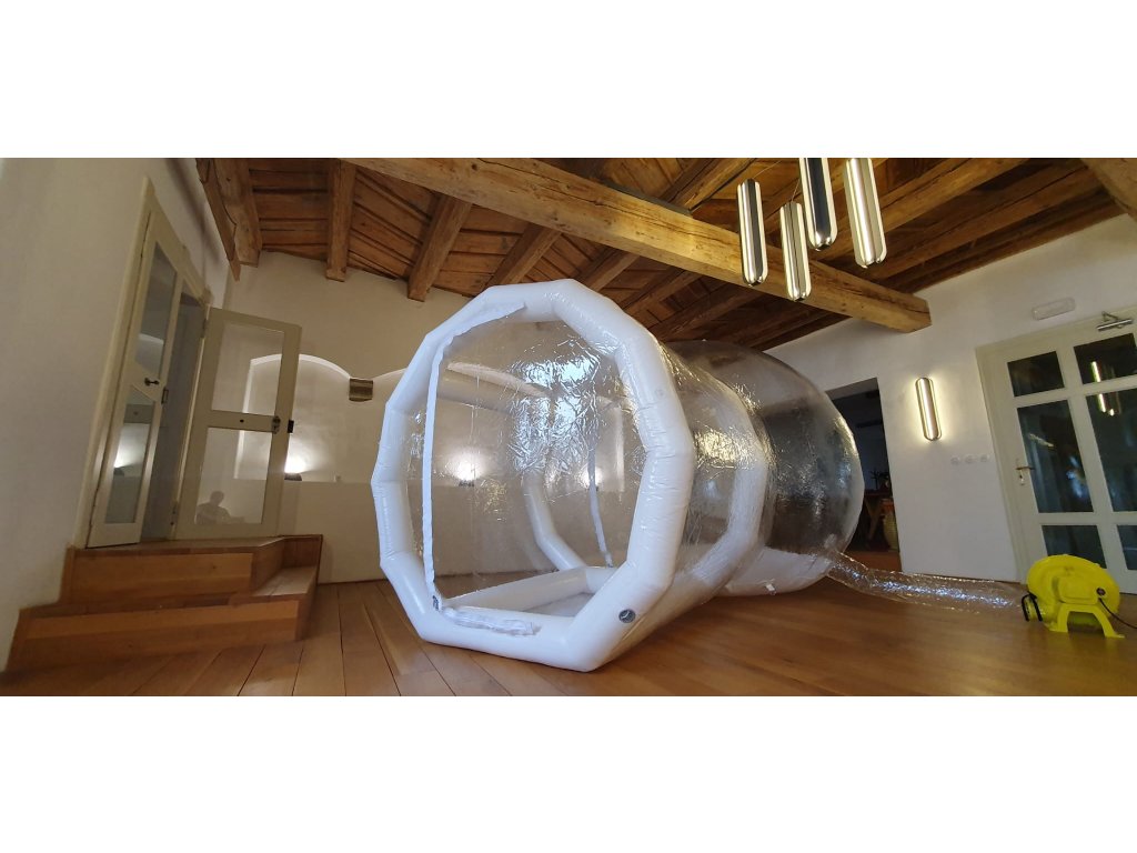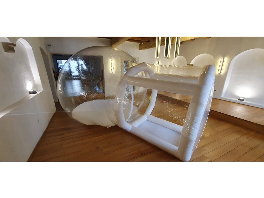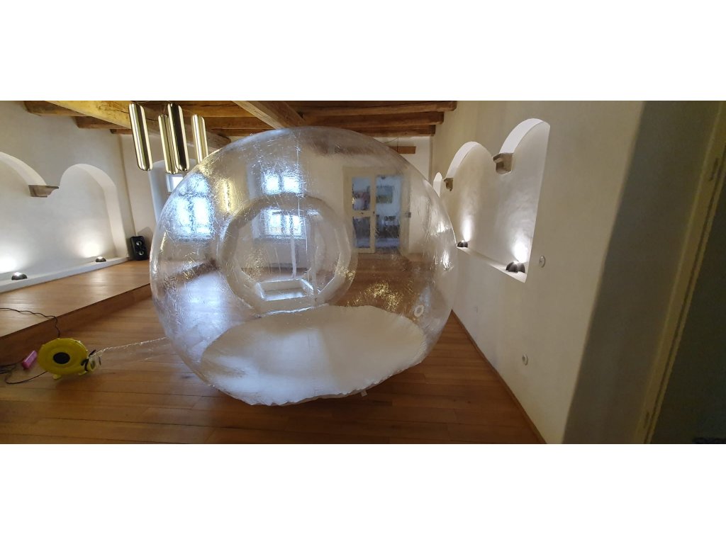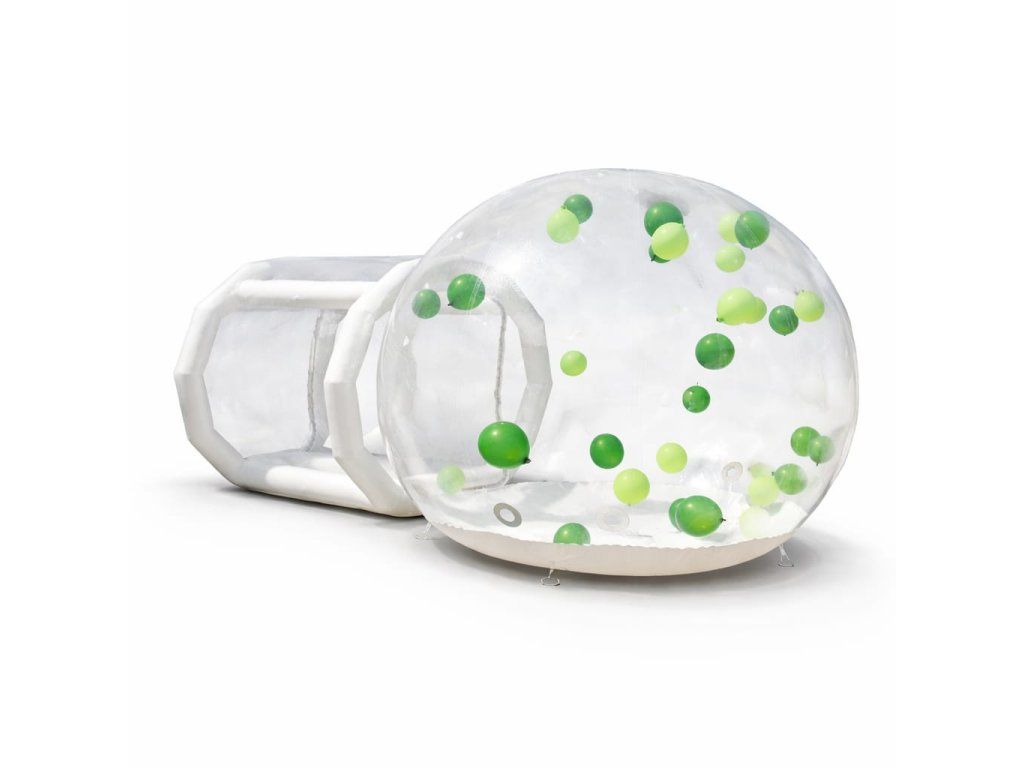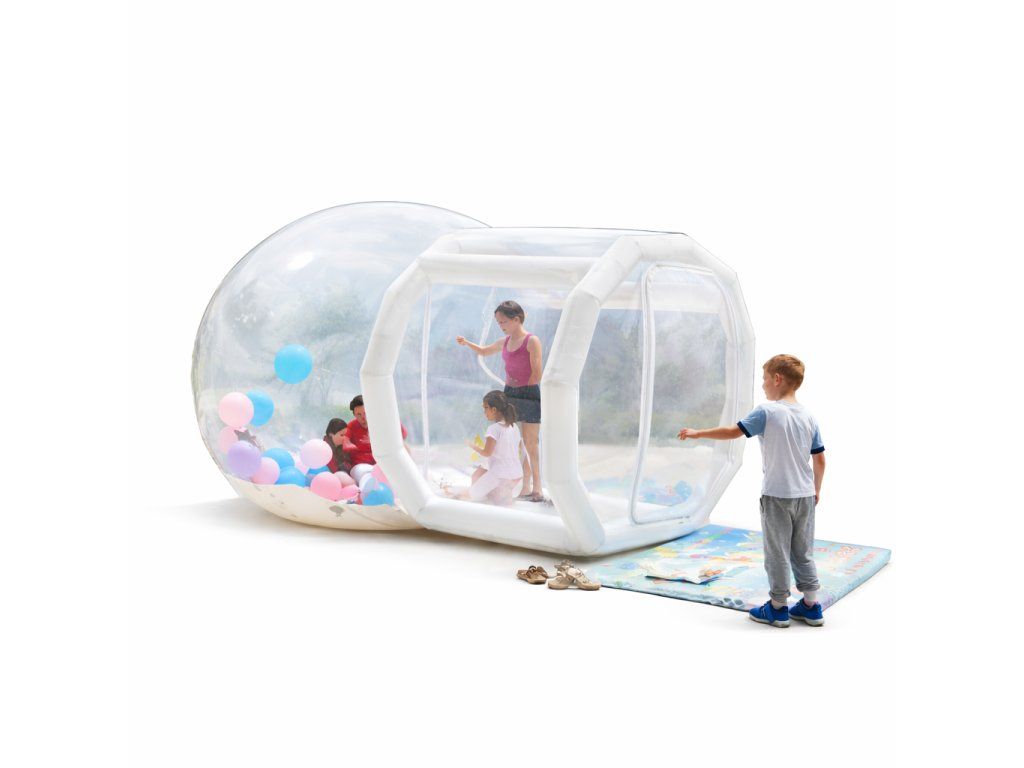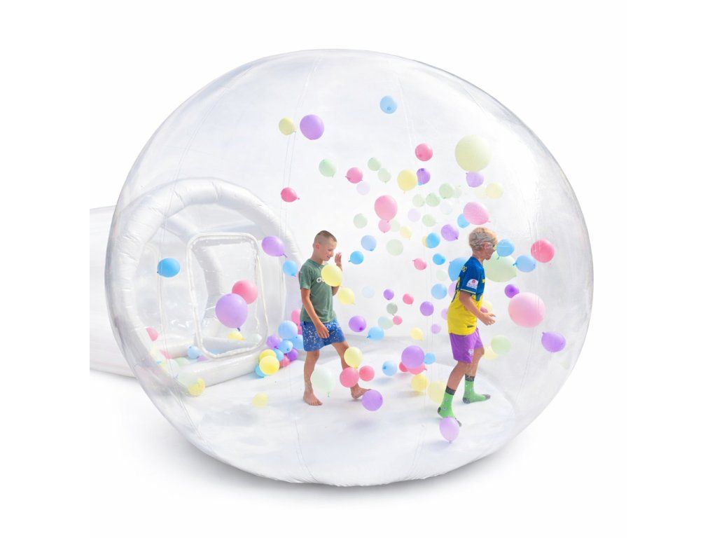 Průhledný nafukovací dům nebo chcete-li nafukovací průhledné igloo je vyrobené z PVC a průhledné fólie. Nafukovací iglů je opatřeno vstupní předsíní, skrze kterou se dostanete do hlavní nafukovací kopule. Pomocí vzdušného proudu, který je do domu přiváděn, rozdmychá nafoukané balónky po celém prostoru iglů. Vytváří tak nevšední prostor pro vytvoření originálních fotografií z vaší oslavy, svatby nebo narozenin.