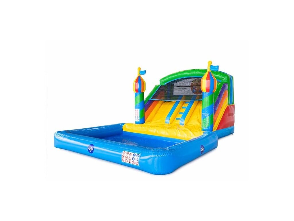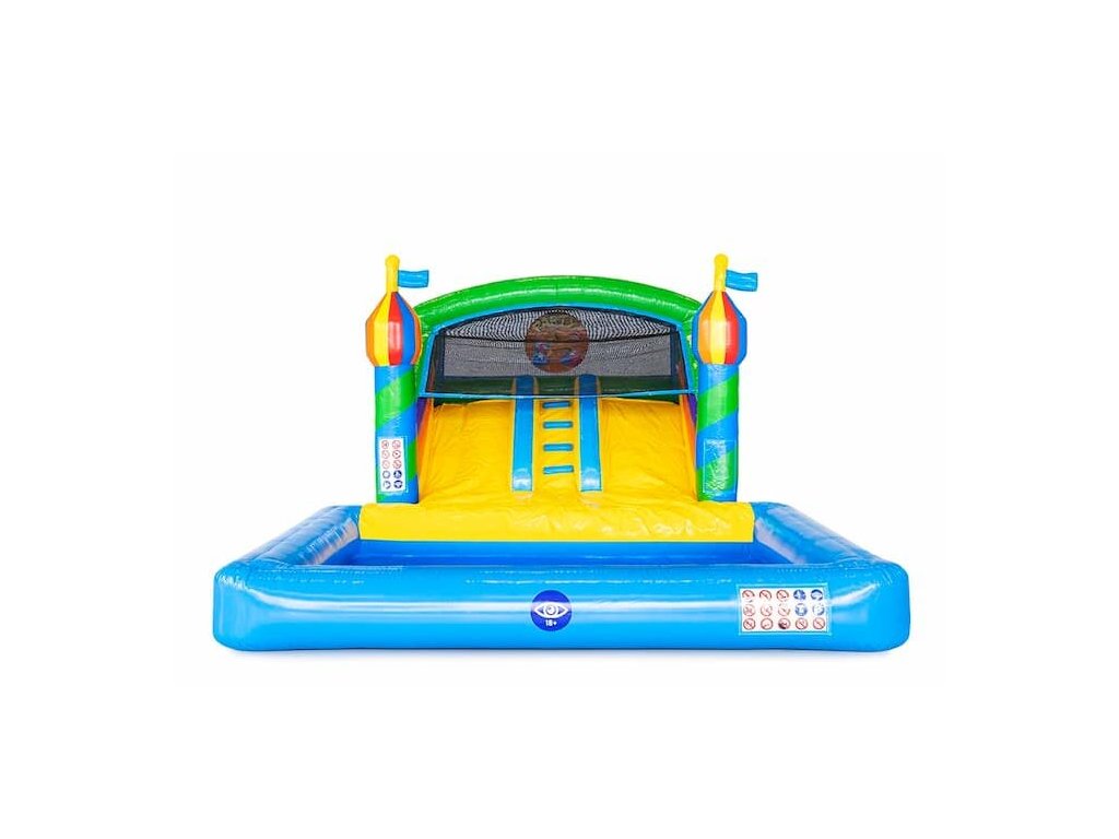 Tento skákací hrad s vodní skluzavkou je ideální pro nezapomenutelné oslavy, rodinné sešlosti nebo večírky s přáteli na vaší zahradě. Nabízí spoustu zábavy při skákání, sjíždění a lezení, a díky své multifunkční konstrukci si poradí s různými příležitostmi – od letních her po odpočinkové odpoledne.