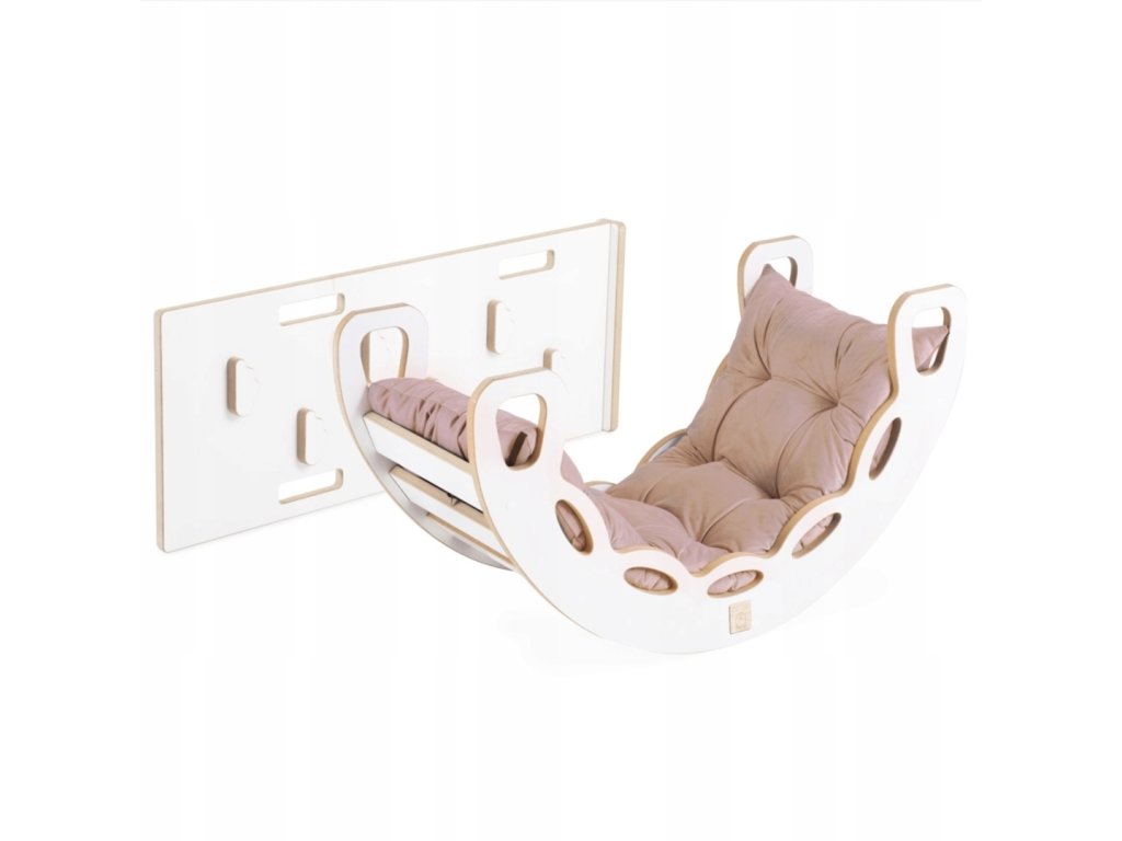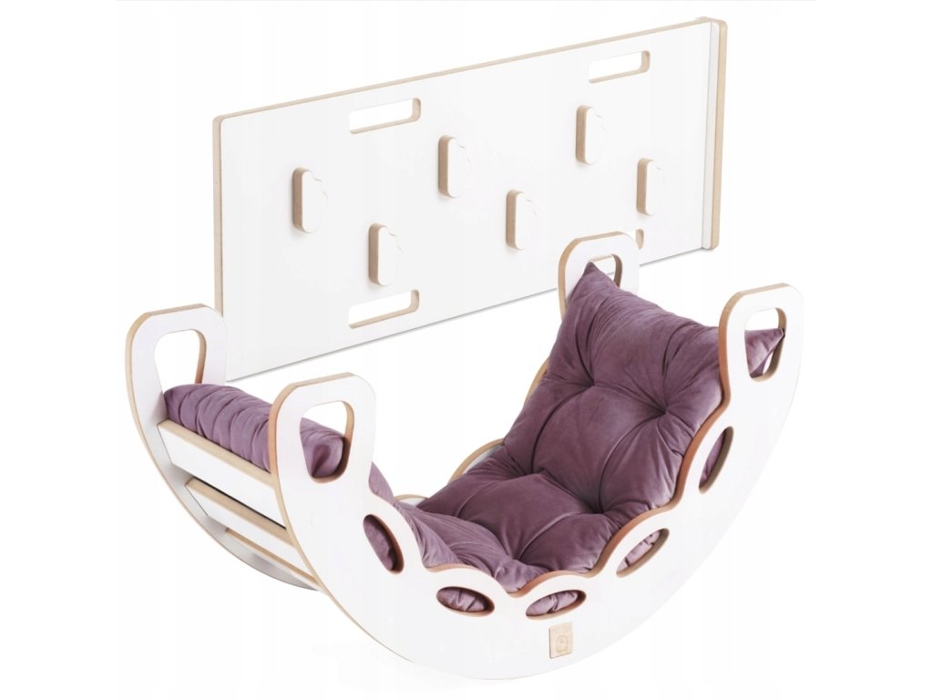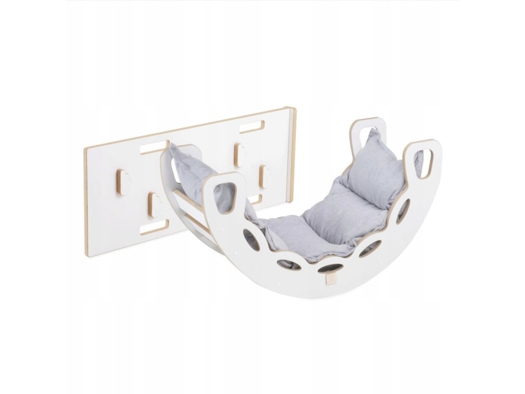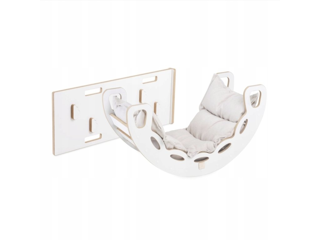 Tento set kombinuje houpačku, lezeckou stěnu/skluzavku a měkoučký polštář, takže nabízí zábavu, pohyb i pohodlí v jednom. 💛