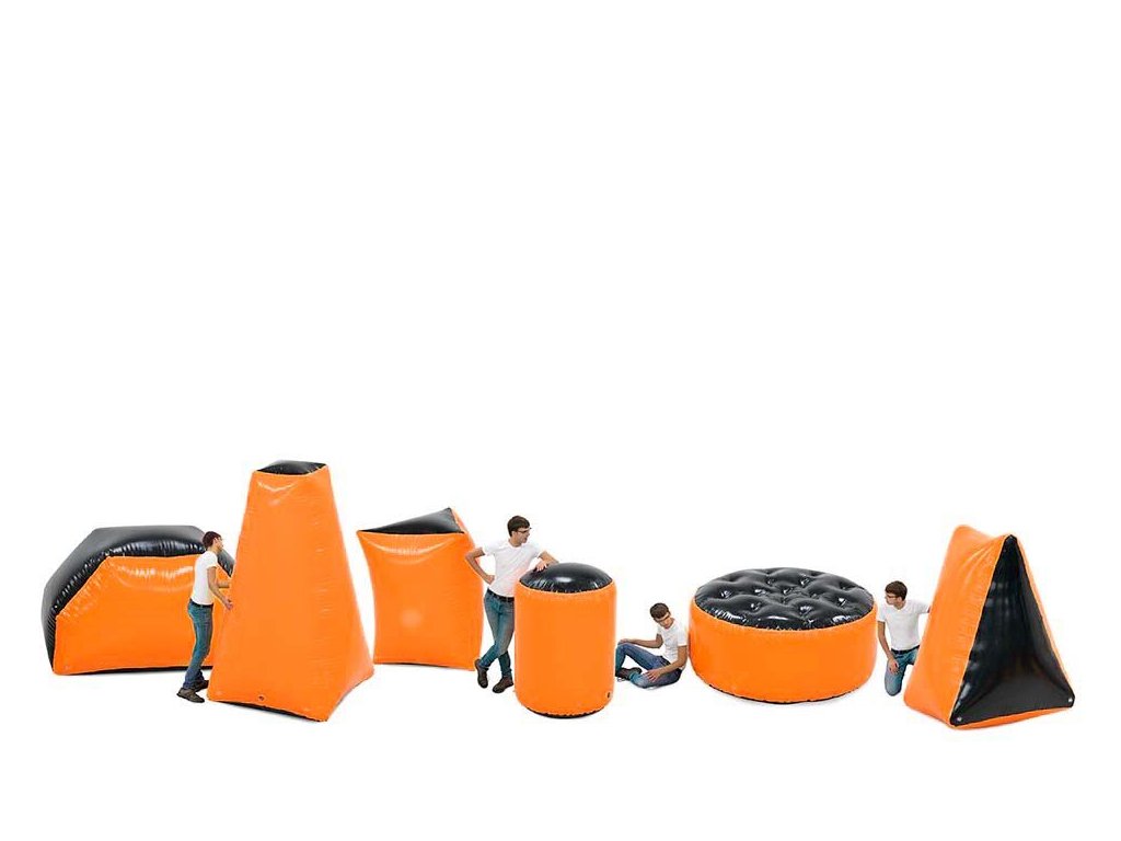 Tento Battle set překážek v oranžové barvě obsahuje 6 nafukovacích překážek, které můžete využít při různých střeleckých hrách – ať už střílíte z Nerf pistole, pomocí laserů, nebo s lukem a šípy.