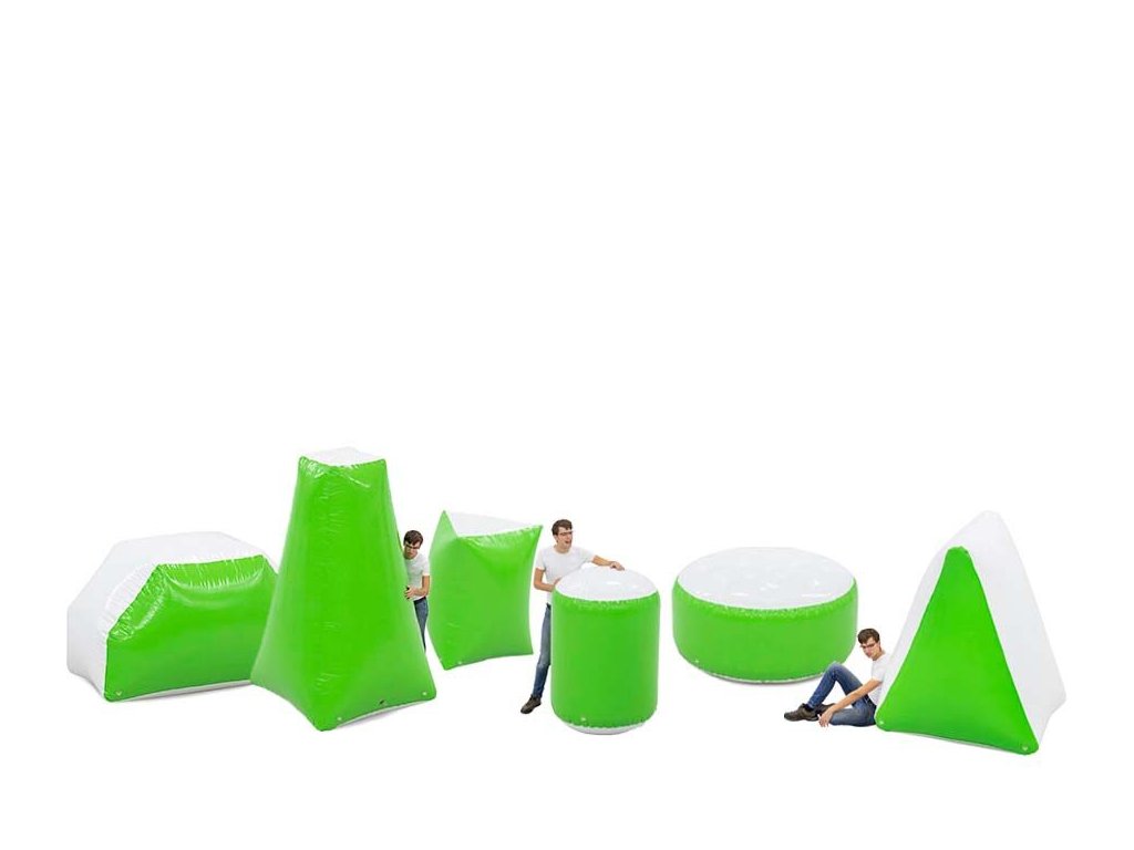 Tento Battle set překážek v zelené barvě obsahuje 6 nafukovacích překážek, které můžete využít při různých střeleckých hrách – ať už střílíte z Nerf pistole, pomocí laserů, nebo s lukem a šípy.