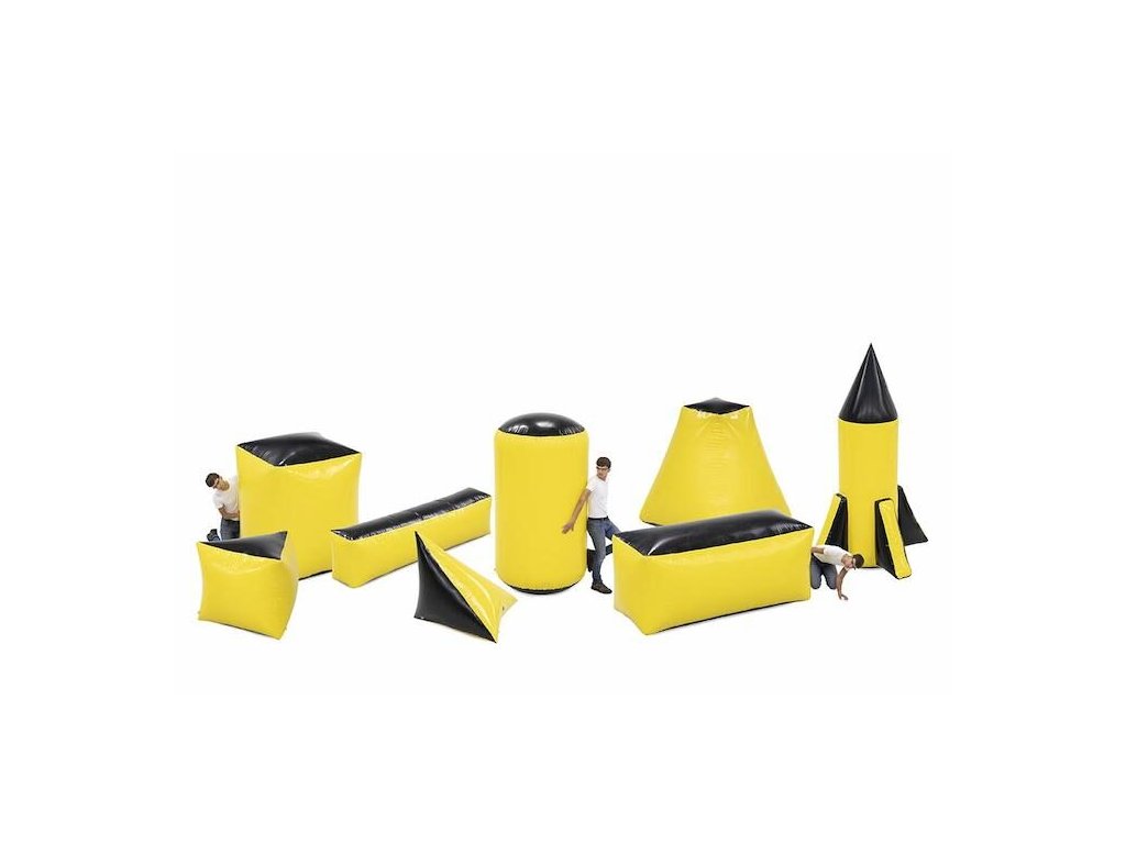 Tento Battle set překážek v žluté barvě obsahuje 8 nafukovacích překážek, které můžete využít při různých střeleckých hrách – ať už střílíte z Nerf pistole, pomocí laserů, nebo s lukem a šípy.
