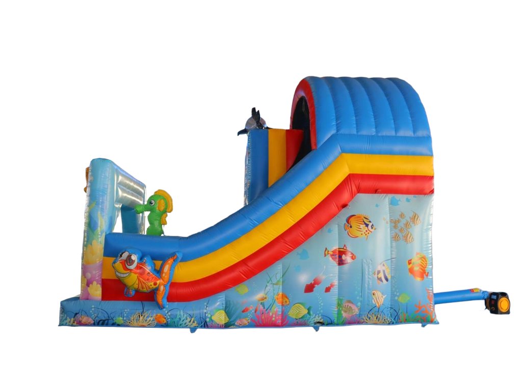 Vydejte se s dětmi na dobrodružnou cestu do hlubin moře! Nafukovací skluzavka OCEÁNIE přináší jedinečný zážitek inspirovaný podmořským světem – nechybí barevné ryby, korály ani vlny oceánu. Tato atraktivní vodní skluzavka zaujme na první pohled svým hravým designem a bezpečnou konstrukcí.