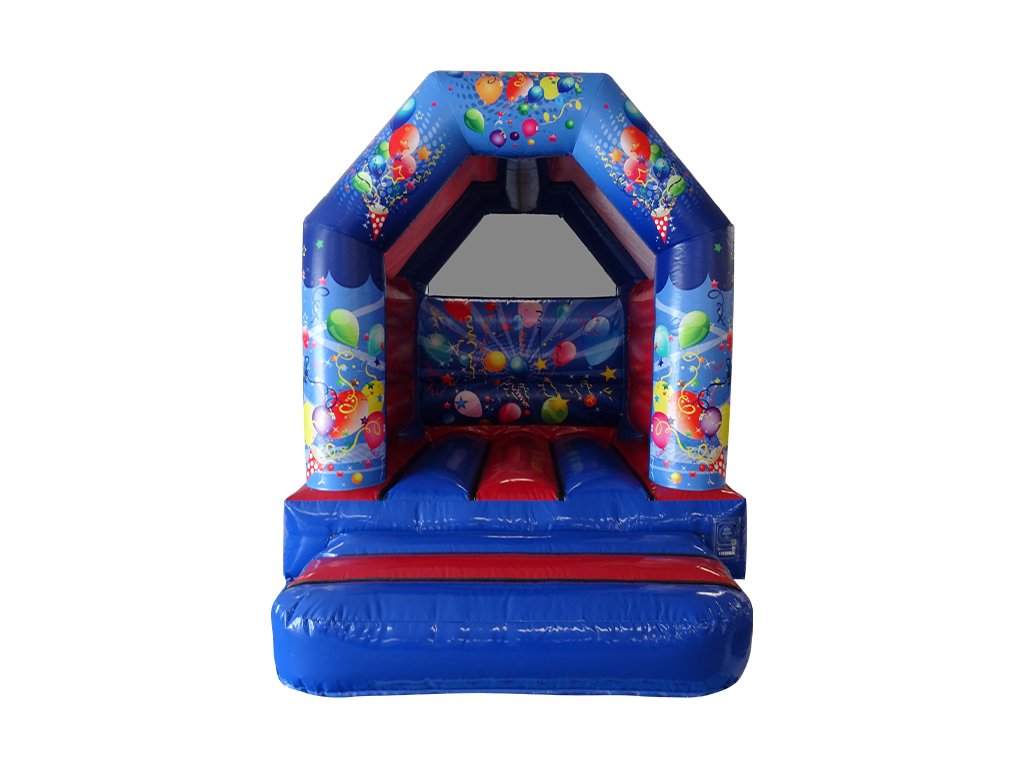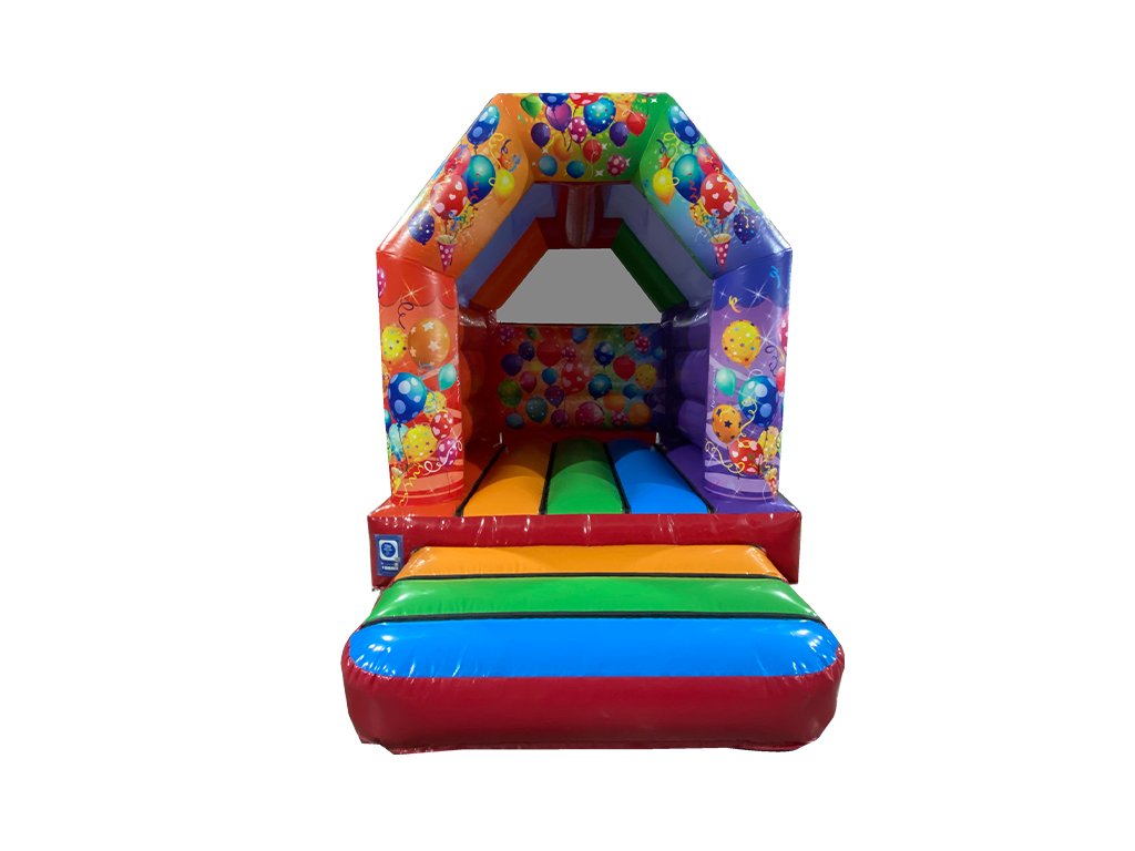 Skákací hrad "ÁČKO" nejmenší velikost – klasika s praktickou střechou. Balónkový motiv.