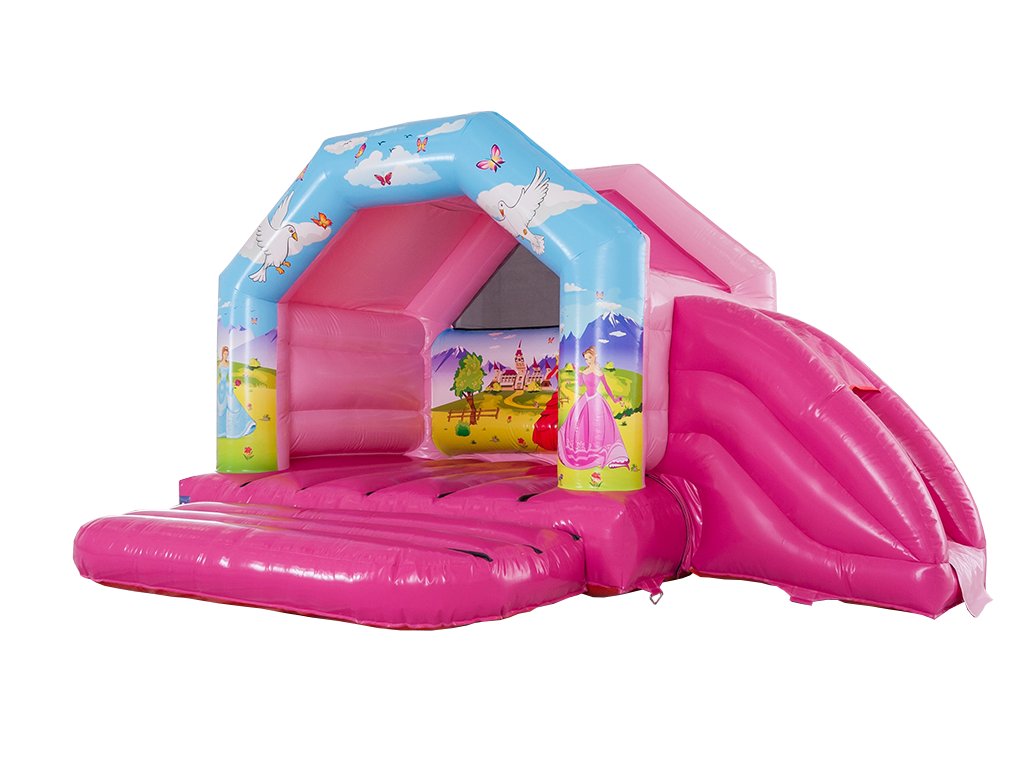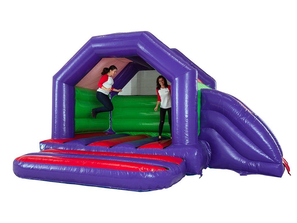 Klasické áčkové provedení s boční mini skluzavkou. Kompaktní atrakce pro kluky i pro holky. Snadná manipulace, přiměřená váha 80 kg. Střední rozměry cca 4 x 5,1m s výškou do 3m. Součástí vše potřebné, dmychadlo, kotevní kolíky, transportní vak a především platná dokumentace včetně prohlášení o shodě a dokumentární příručky. Poskytujeme 2 letou záruku, záruční i pozáruční servis přímo v naší firmě v ČR.